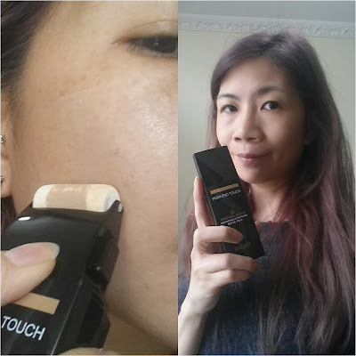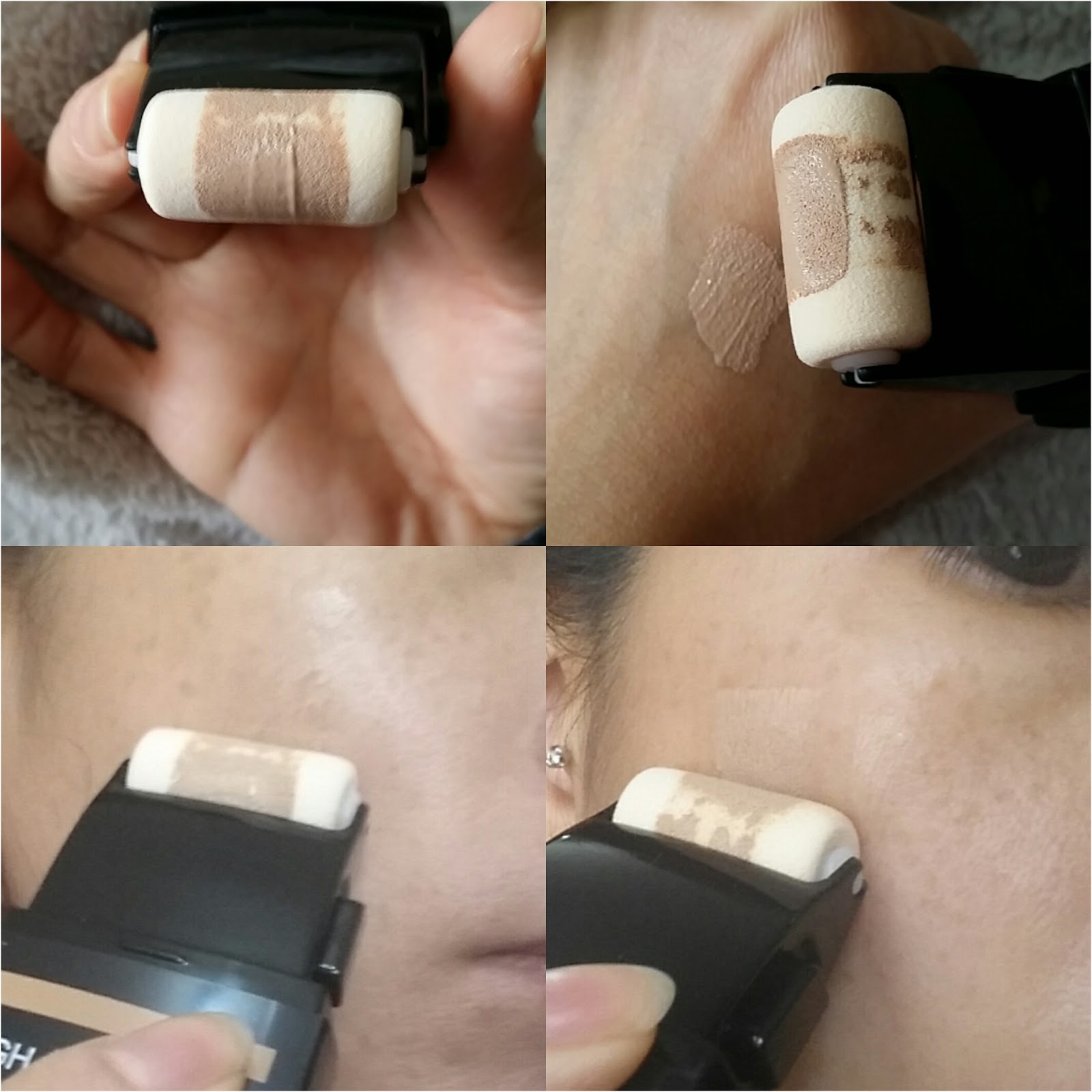 開始用: 就禁轆轆係不會有粉底架,用前按一下左面的按扭,粉底液會慢慢從底的滾輪轆出來。如需多一點粉底液可再按,一般按1-2下已經足夠用,每次可以一下一下去按,非常方便。 面上轆下轆下斑點都可以遮蓋得到,而且很貼服輕鬆化個妝,天氣冷冷它有保養精華成份,用後水潤亮澤不會脫妝。