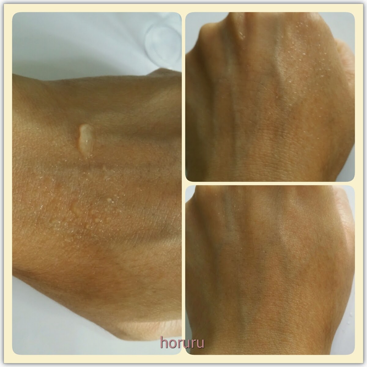 按一至兩泵精華液已足夠全面使用, 推開手背吸收升度算是不錯,