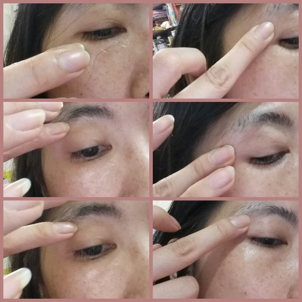 步驟1: 取一粒小米份量於無名指以指腹由眉頭至下眼角以上出下入方式提拉