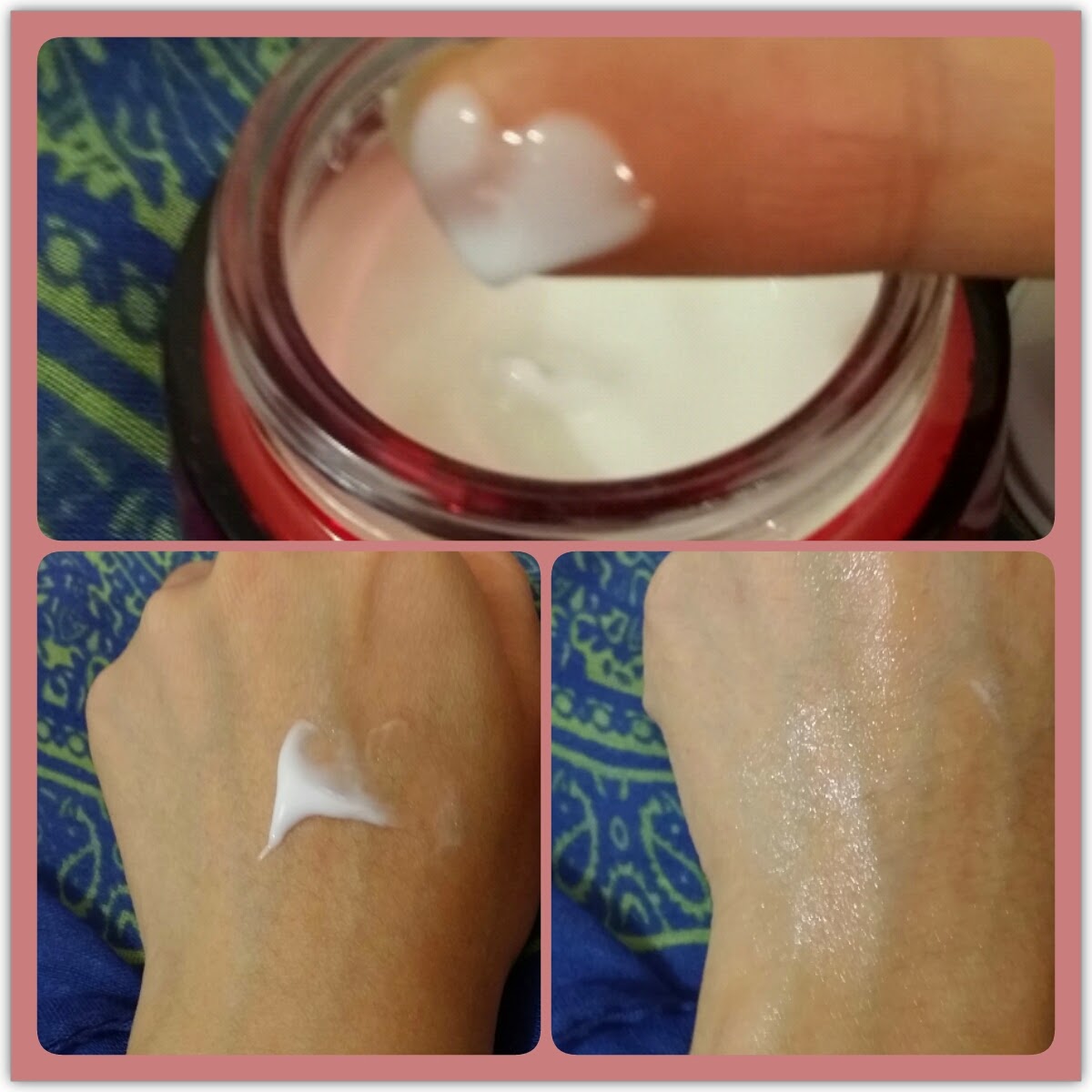 精華面霜白色乳霜質地,滲透力很強而這個天氣時份感覺令肌膚更滋潤,提昇肌膚彈性 有效改善肌膚鬆弛、缺乏彈性、細紋、乾燥、膚質粗糙、毛孔粗大、膚色不均色斑、缺乏光澤、以及肌膚暗黃等 10 大肌膚老化跡象,用後不會有笠既情況出現,看起肌膚不會油光光。