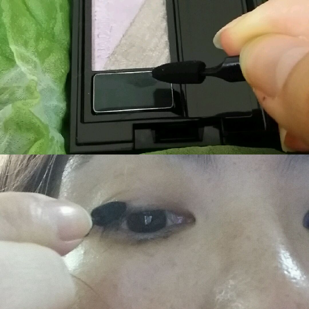 用眼線筆從眼角至眼尾的睫毛邊緣畫上眉筆芯幼幼的,輕易就能畫上。
