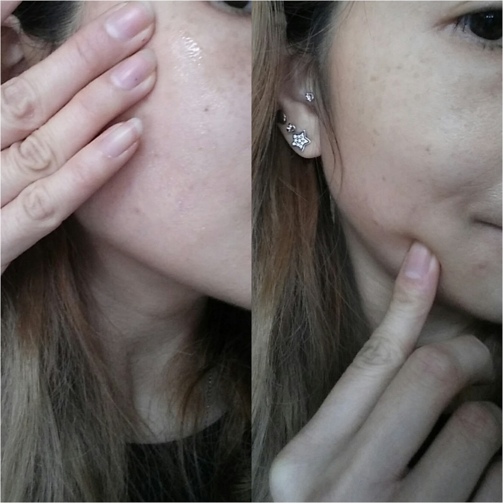 試上綠茶籽精萃水分菁露是水份十足透明凝露狀,易於推開質地不厚。