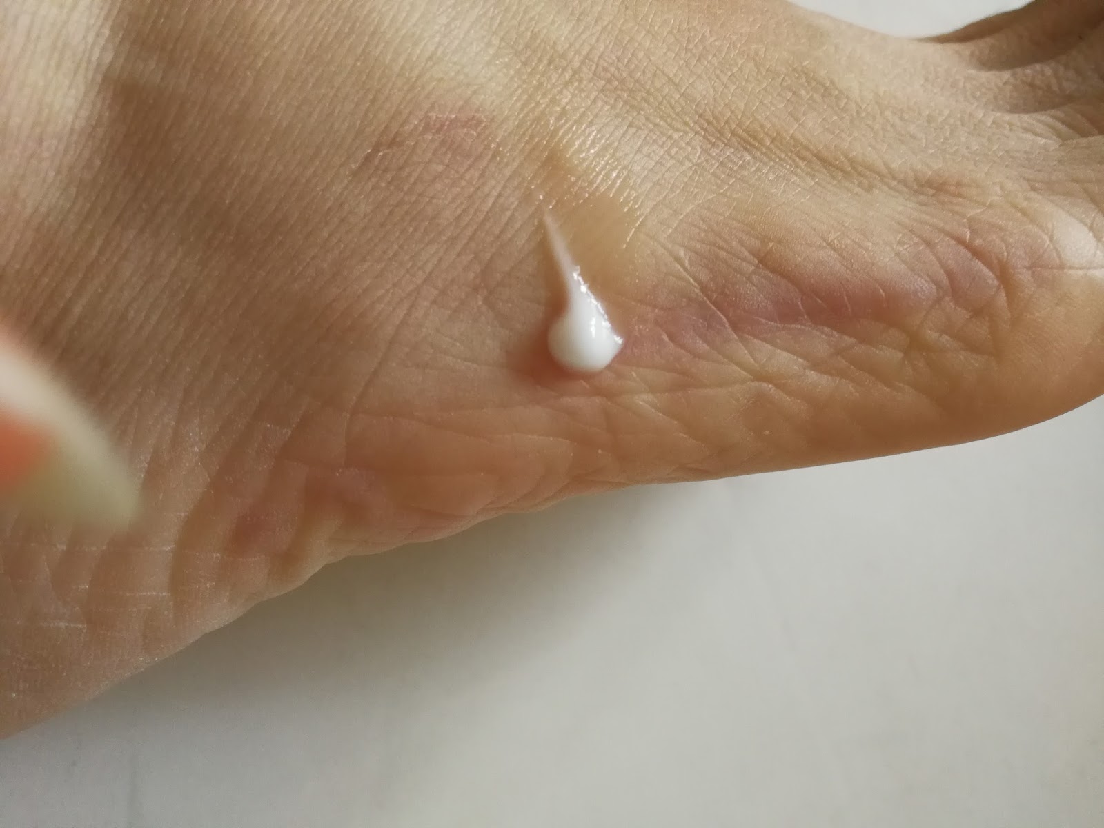 白色修復霜呈乳液狀,質地細滑易便於推開,令皮膚感覺舒適。
