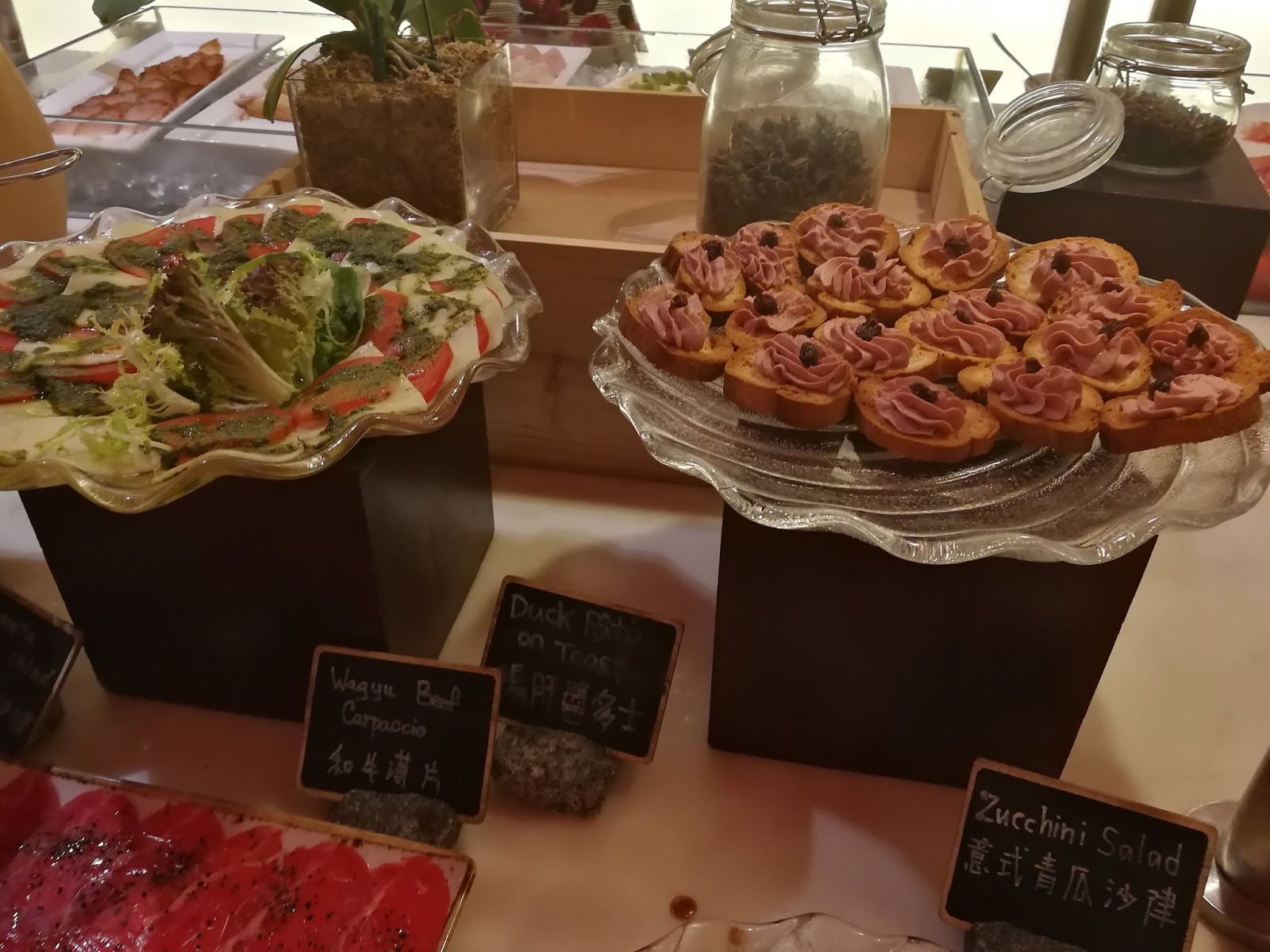 冷盤有和牛薄片、意式青瓜沙律菜、鵝肝醬多士。