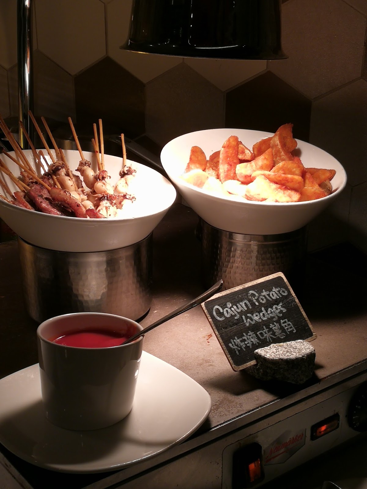墨魚仔串燒及炸酸辣味薯角