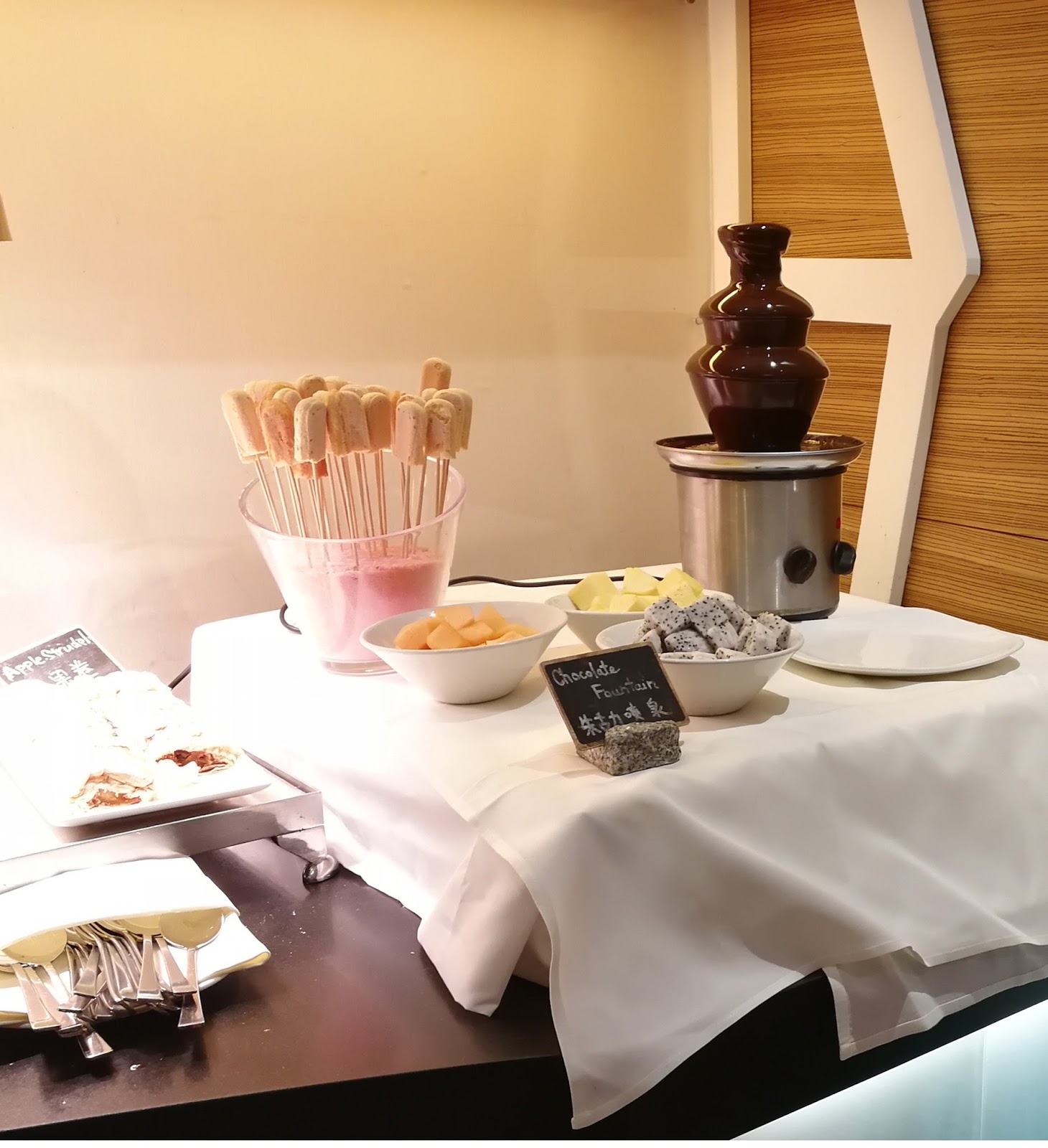 我相信大部分小朋友見到都會直沖過去,眼金金會睇見都流口水既朱古力噴泉。可以選擇用鮮果、棉花糖、餅去點上朱古力噴泉。