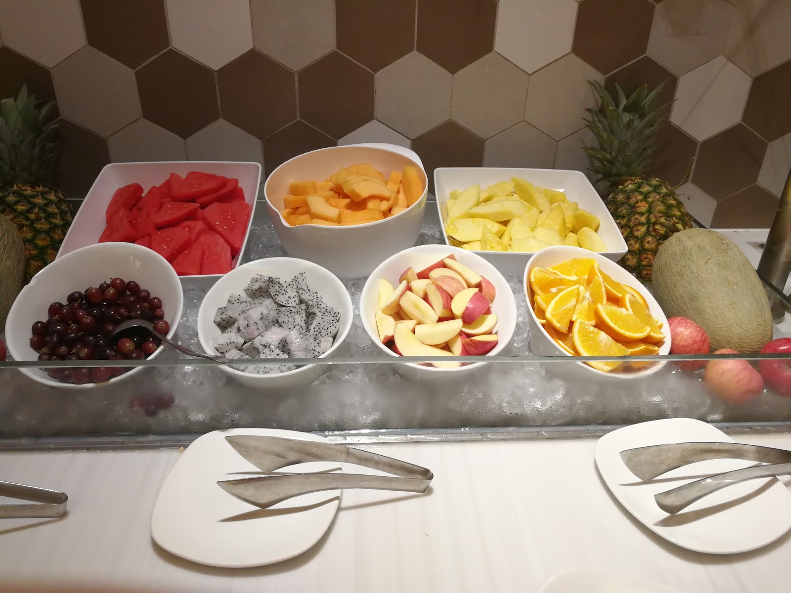 生果有蘋果、燈、火龍果、菠蘿、西瓜等等
