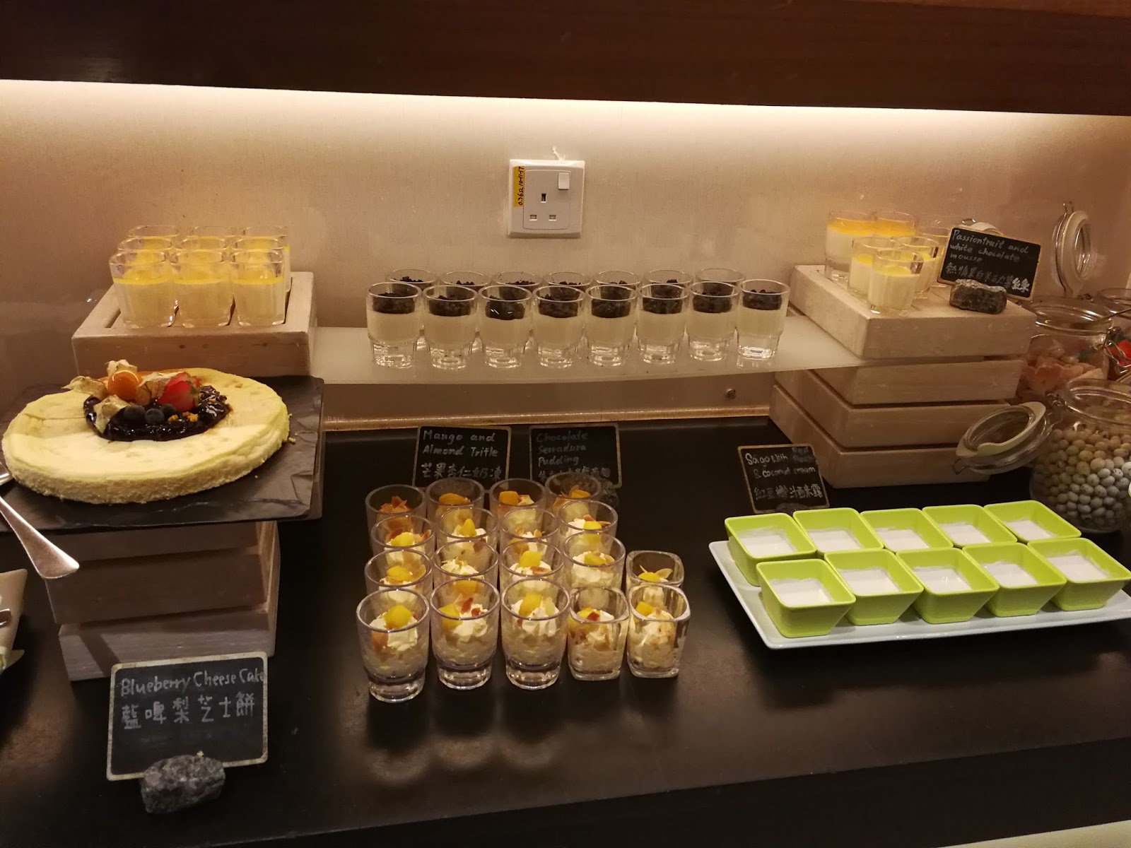 有藍莓芝士餅、紅豆椰汁西米露、芒果杏仁奶凍