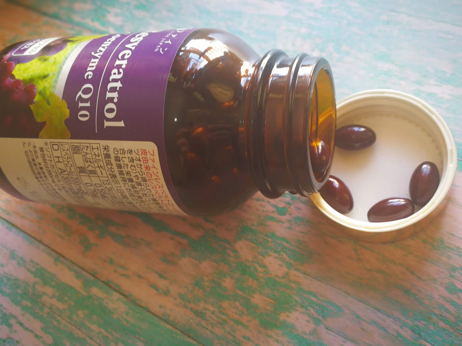 葡萄果皮萃取物粉末(含有白藜蘆醇),精煉魚油,紅花油,明膠,輔酶Q10,水分保持劑(甘油) 乳化劑(E471),上光劑 (蜂蠟),色素(醬色I),維生素E,維生素B1,維生素B2,維生素B6(含有大豆).