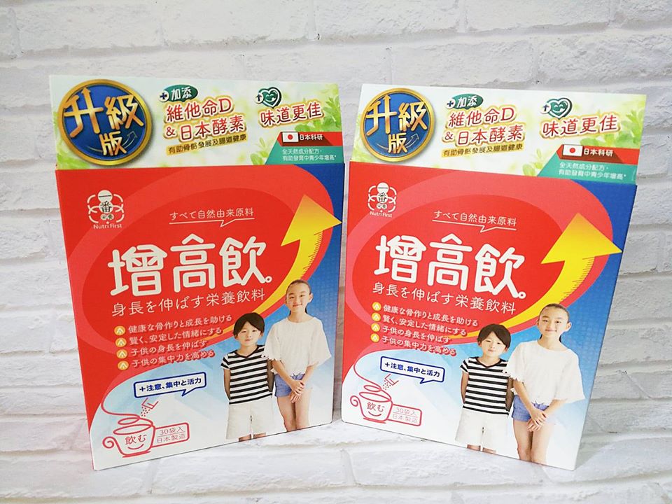一番營養「增高飲」 日本研發製造 成分全天然,含豐富 精胺酸,能促進 生長激素 分泌,幫助長高。成分更配合蘋果果膠 有助增強專注力 及 穩定精情緒,非常適合發育中嘅學童。